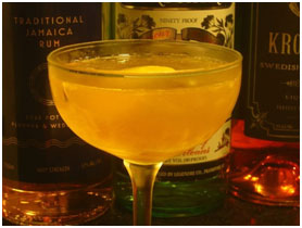Shake gin and white rum (alternately, bourbon whiskey) ½ oz each with ¾ oz absinthe and pour it into a cocktail glass before serving chilled.