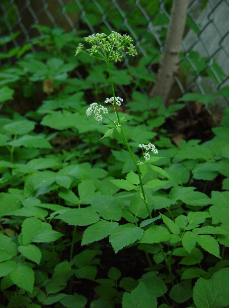 Leaves : Aegopodium podagraria in vegetated form has white edges with green and grayish leaves, while the wild ones have green leaves. It grows on a stem which grows to about 3 ft above the ground.
