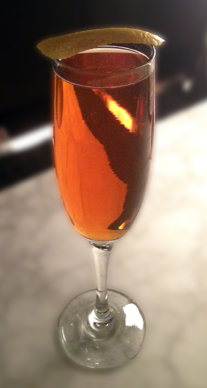 Use your shaker to mix 1 oz of each of applejack (like Laird’s, Captain Applejack), brandy and lemon juice, along with 2 dashes of triple sec. Throw ice cubes into a champagne glass and pour the mixture over these. Next, pour chilled rose wine or champagne to fill up the rest of the glass. Give a gentle stir and serve with a citrus peel.