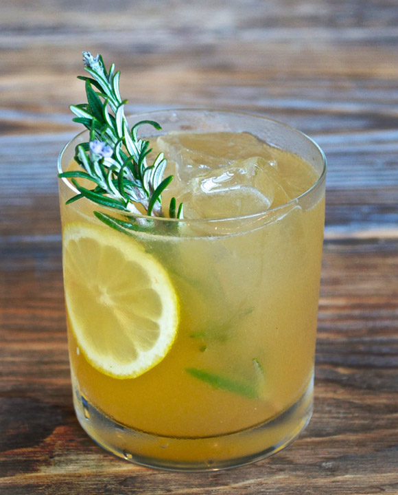 In a shaker, mix 2 oz of bourbon, 3/4 hand-smashed mint leaves, ½ tsp of each of grenadine, lemon juice, and superfine sugar. Transfer into a cocktail glass over crushed ice. Garnish with rosemary and basil sprigs along with an orange or a lemon rind.