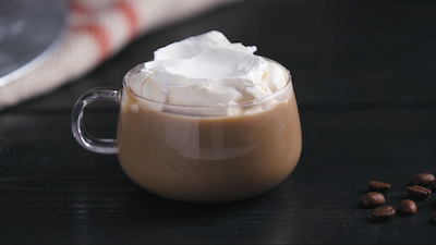 Shake together for 10 seconds 2 oz bourbon, along with ½ oz of each of heavy cream, coffee liquor, almond orgeat syrup and a pinch of cinnamon powder. Pour the mix into a tall cocktail glass and fill the rest with club soda, holding the bottle above 5-6 inches from the glass so as to ‘lift’ the foam. Serve immediately.