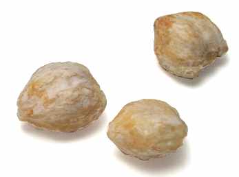 Nuts: The round nuts are 4 to 6 centimeters in diameter. They have a hard shell covering which is green or brown in color. Inside the hard shell there is the whitish flesh or pulp. Single nuts grow on stout stalks. The nuts contain one or two seeds.