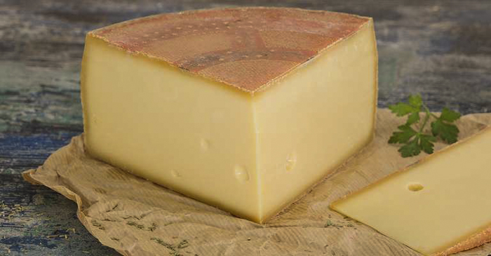 Prepared from cow’s milk, this semi-hard cheese with a smooth rind, derives its origination from the Alpine regions of Switzerland as early as the 13th century. This creamy buttery cheese with a fruity taste may be pale yellow or orangish-brown on the outer side and golden within.