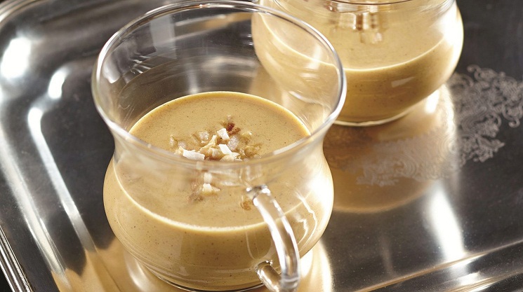 Blend 6 eggs and ¾ bottle coconut rum at high speed. Next, lower speed and blend with it 14 oz evaporated milk, 10 oz condensed milk, 2 3 oz liquid dark chocolate, 1 tbsp vanilla and a cup of brandy. Serve chilled in short, wide mugs.