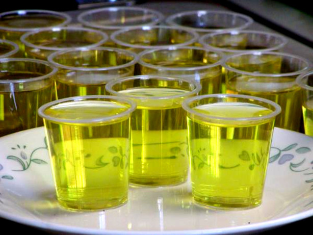 This one serves 50. First keep 12.5 oz of frozen Bailey’s Irish cream ready. Now, mix together Malibu coconut rum, banana liqueur, melon liqueur 25 oz each. Before you serve the shots to your guests, just drop a tiny bit of the Irish cream on top.