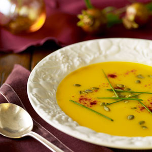- Leek and Delicata Squash soup with Caramelized Apple Croutons