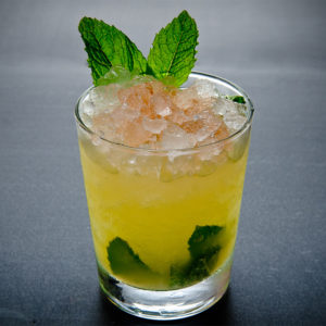 In a mixer-grinder, throw a few freshly chopped parsley and mint leaves, a 2-inch sliced cucumber, juice of half a lemon, ¼ tsp ground cinnamon, 2 tsp raw honey, and 1 cup chilled water. Blend for 10 seconds. Pour ¼ oz of Everclear in a glass, and strain the mixture in it. Top with a mint sprig and crushed ice.