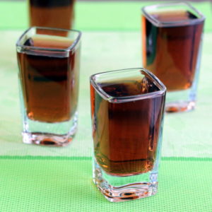 In a shaker, mix ½ oz of each of the following: Everclear, Jack Daniel’s Whiskey, Yokun Jack honey whiskey, vodka, and tequila, along with ½ tsp powdered brown sugar, 1tsp apple cider and 1 cup green apple juice. Serve with ice cubes and lemon rinds in pre-frozen glasses.