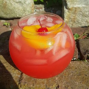 Take a large jar and stir mix 2 cups vodka, ½ cup Everclear, ¼ cup Malibu Rum, 1 cup of lemonade or any soft drink (like Sprite), a pack of Kool Aid (tropical flavor), and 1 cup of each of Hawaiian fruit punch, pineapple juice, orange juice, and mango juice (or any other customized juices of your choice including grape, blueberry, watermelon, and strawberry). Strain over ice and decorate with a cherry and pineapple slice.