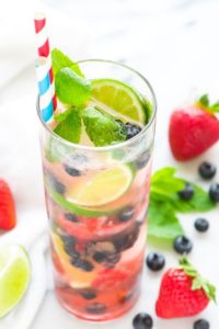 You need to mix ½ oz of each of Ole Smoky Blackberry Moonshine and Everclear, ¼ cup of orange, pineapple and watermelon juices each (alternately, you can customize with peach, cherry or cranberry juices), and 3 tbsp of muddle-mashed seasonal berries (like blackberry, blueberry, strawberry), and shake up vigorously in a cocktail shaker. Refrigerate for 15 minutes and serve the hooch with mint and lemon wedges.