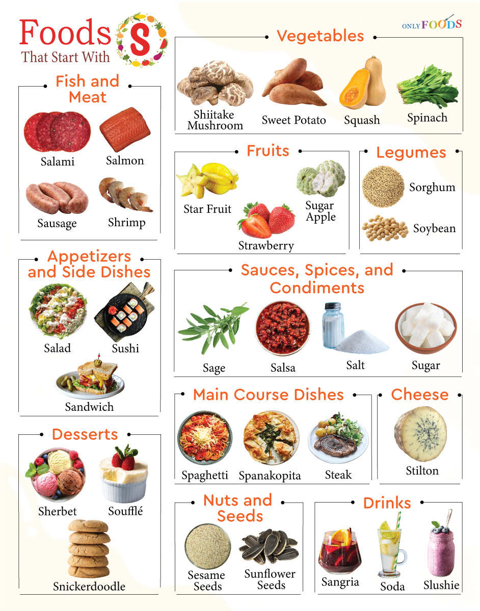 Being one of the letters in the English alphabet with the most number of words starting with it, ‘S’ has plenty of well-known foods starting with it. From fruits and vegetables to seafood, desserts, and beverages, the following list contains over 175 foods with names starting with ‘S.’