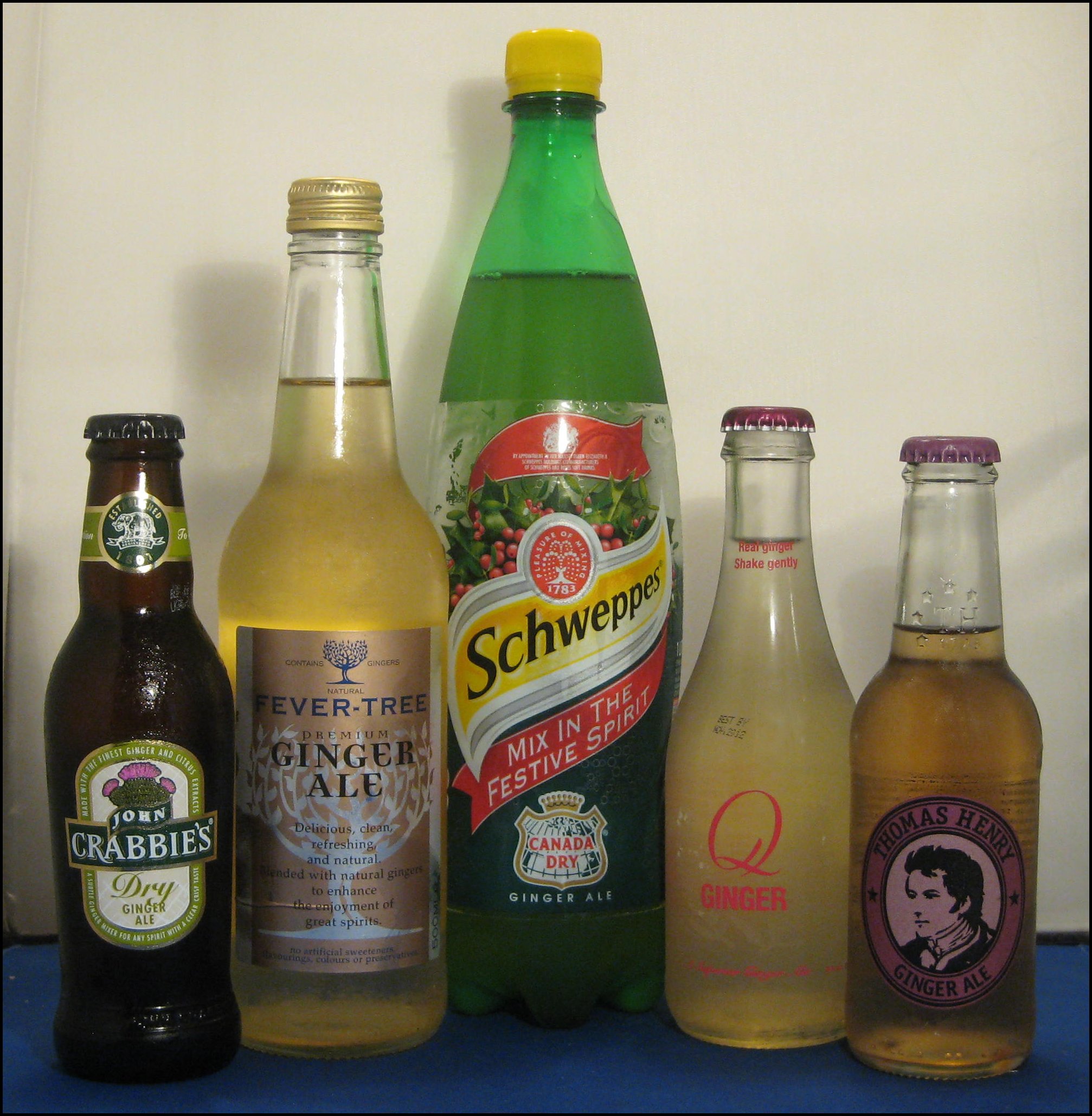 Ginger Ale is a ginger-flavored carbonated soft drink found in two varieties with one having an intense golden tinge while the other is pale yellow. Ginger ale is made of water, sugar and natural or artificial ginger flavorings. It is gluten-free and does not have caffeine, with each 1-fl oz serving containing as little as 10 calories.