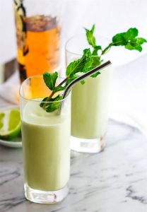 First, use a muddler to crush 1 or 2 lime wheels, 1 sprig of rosemary, along with 1 tsp simple sugar syrup. Now, fill a cocktail shaker with 1 cup ice cubes, ½ oz lemon juice, 1 oz unsweetened coconut milk, 1½ oz vodka, and shake-mix evenly. Strain into glasses, and top with 2 oz of cold ginger beer. Stand a long mint sprig before you serve.