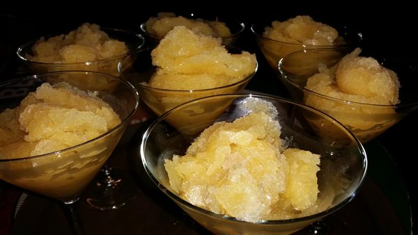 In a large bowl, mix 2 cups of strongly brewed sweet tea liquor (cold or at room temperature), 1½ cups of JD Black Label (or Blue Label) whiskey, and 12 oz of lemonade, 6 oz of pineapple juice concentrate (both thawed), and 6 cups of chilled water. Keep the bowl in the freezer undisturbed for 7-8 hours. Take out the bowl and stir it for a while, and then freeze it for 2 more hours. Take it out from the freezer 15 minutes before you decide to serve. Stir it and serve in ice cream bowls.