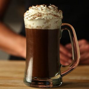 This one is a good winter holiday drink for Holloween or Christmas parties to receive your guests. To make it, add ½ oz of Jagermeister and bourbon whiskey, each, to a cup of steaming hot coffee or espresso. Top with whipped cream and ground caramel. Serve fuming hot.