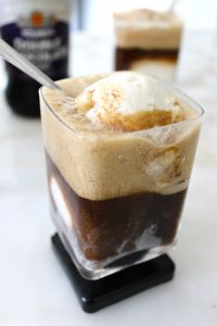 In a glass jar, pour 2 oz Maker’s Mark, 1 oz white crème de cacao, and ¼ oz hazelnut liqueur. Stir well with ice cubes and strain in pre-frozen glasses. Top with a scoop of chocolate or vanilla ice cream.