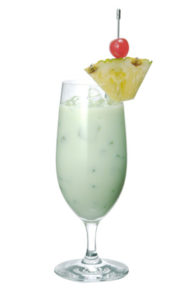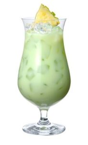Blend 2 oz Midori melon with 1 oz coconut rum and 6 oz pina colada. Serve in Collins or any tall glass, garnished with a cherry and/or a pineapple slice.