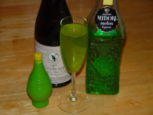 Just mix 1 oz Midori melon with 3 oz champagne and serve in pre-frozen champagne glasses.