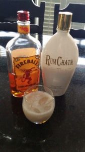 Combine 1 part of each of RumChata and Fireball into shot glasses. Top with whipped cream and a pinch of cinnamon powder. Now gulp down.