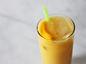 [Tip: If you want the yellowish hue of the fall, replace orange juice with pineapple, and if you want it reddish, go for strawberry or tomato.]