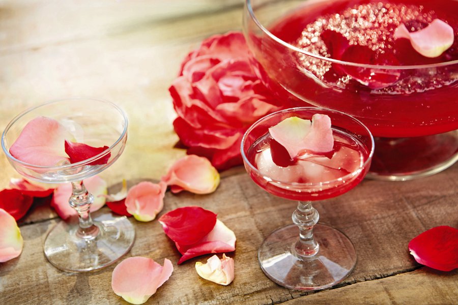 This all-red summer drink with no alcohol is ideal for girls and kids and will help you stay cool. Mix well 1 oz Tropical Sangria, 1 oz of fresh strawberry juice, 3 oz of Hawaiian fruit punch, and 1 oz ginger beer over ice in drinking glasses. Decorate with rose petals before you serve your friends.