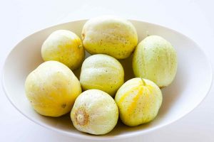 As the name implies, these cucumbers come with the size and color akin to a lemon. As the fruits ripen, their thin skin turns golden-yellow with the flesh becoming sweet and crispy. They have minimal soft seeds and lack the hint of bitterness found in other cucumber varieties. While lemon cucumbers are used for making delicious pickles, they are also served fresh in tofu salads, pea salads, zucchini, and basil pesto. Their juices are included in smoothies, cocktails, and Aguas Frescas.