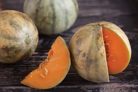A French cantaloupe grown in 1920, in France, it is as small as a softball. Smooth-textured, it has a greenish-white skin, and an orange flesh. It replicates the cantaloupe in taste too, but is sweeter, with a more robust aroma especially when cut. This variety remains unsuited for cooking, mostly eaten out-of-hand for breakfast, added to salads and several other desserts, prepared into drinks, or even served as an accompaniment for savories. It is cultivated widely in North Africa, but its production remains limited in the United States.