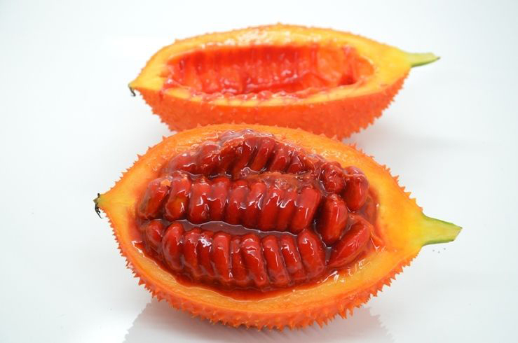 The horn-like spines on the fruit’s body earn it the name horned melon. Indigenous to Central Africa, it is presently grown in other parts too including Australia, New Zealand, and the United States. Its green skin turns orange upon ripening. The flesh has a lime green color, and a jelly-like texture, closely similar to pomegranate or passion fruit. The seeds, as well as the peel, rich in fiber and Vitamin C, are edible. One of the smallest melon types, it is made into salads, smoothies, salsas, and cocktails. Though available year-round, summer, and spring is the best time to get them.