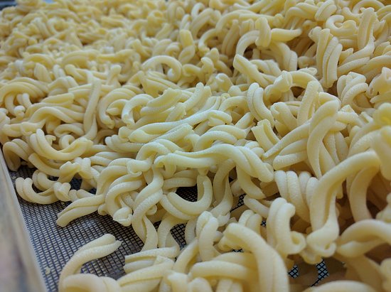 Preferred sauces: Thick sauces made from meat like beef, pork, veal or even rabbit; breadcrumbs and nuts sauce (briciole e noci), Pomodoro e Basilica (basil and tomato), Uovo e Formaggio (cheese and eggs)