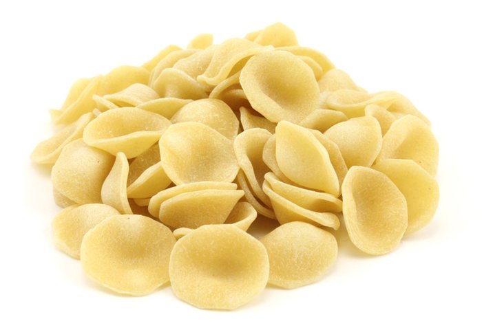 Originating in Sothern Italy’s Apulia, it derives its name from the Italian word orecchia, referring to ear, being in absolute conformity with its shape. Water and durum wheat are its main ingredients, while eggs are added rarely. There is a unique way of making it in most homes of southern Italy, with the dough first rolled and then cut into small cubes, which are then curled and inverted using the thumb. The traditional dish orecchiette alle cime di rapa includes this pasta variety alongside rapini (broccoli rabe), with cauliflower and broccoli serving as alternatives.