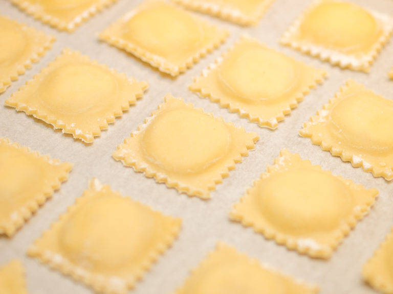 Mostly square in shape, they can also be circular or semi-circular, commonly served in soups, or even eaten with a sauce. The stuffings vary from one region to the other, like, in Latium and Rome, the fillings include nutmeg, ricotta cheese, black pepper, and spinach. In contrast, in Sardinia, the stuffings comprise of grated lemon rind and ricotta. Fresh-packed ravioli has a shelf life of several weeks. Canned ravioli may have fillings of chicken, beef, processed cheese, or Italian sausage. Toasted ravioli originating in Missouri’s St. Louis serves as a famous snack or appetizer.