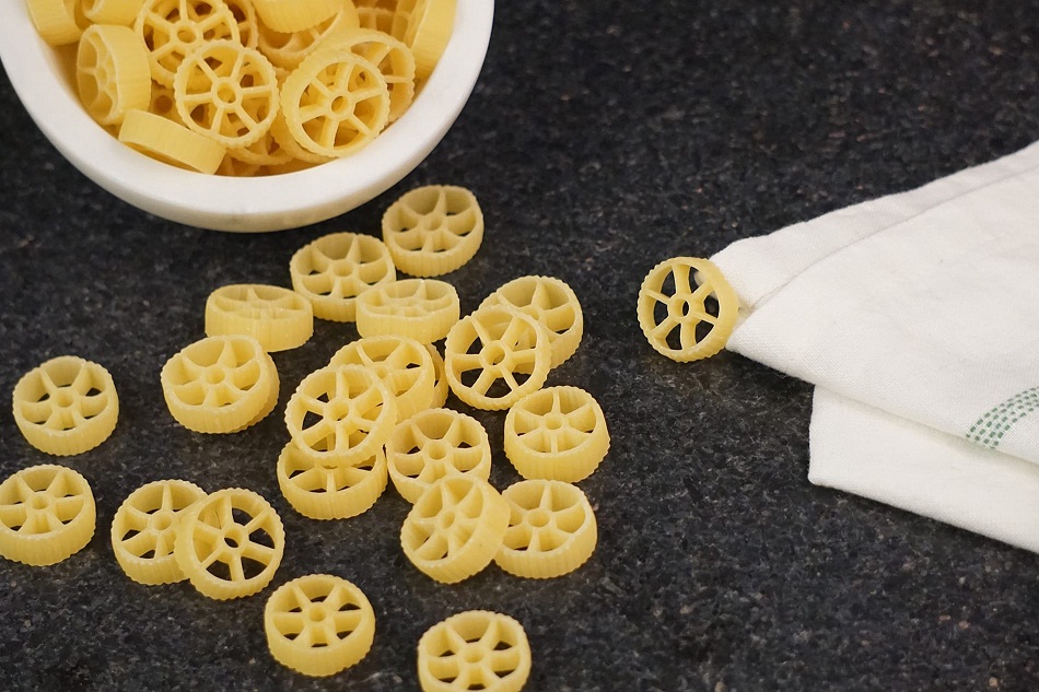 Rotelle in Italian means wheels, and that is how this pasta variety appears to be. They are also referred to as ruote in Italy and wagon wheels in the United States.