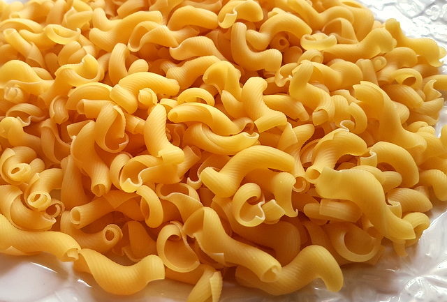 A dry, tubular pasta, prepared using durum wheat, mostly made through extrusion. There is also a curved variety known as elbow macaroni. It is one of the most sought-after pasta types for preparing a whole lot of cuisines, the most popular being macaroni and cheese, immensely famous in North America, as well as a sweet macaroni pudding, mostly eaten in Great Britain.