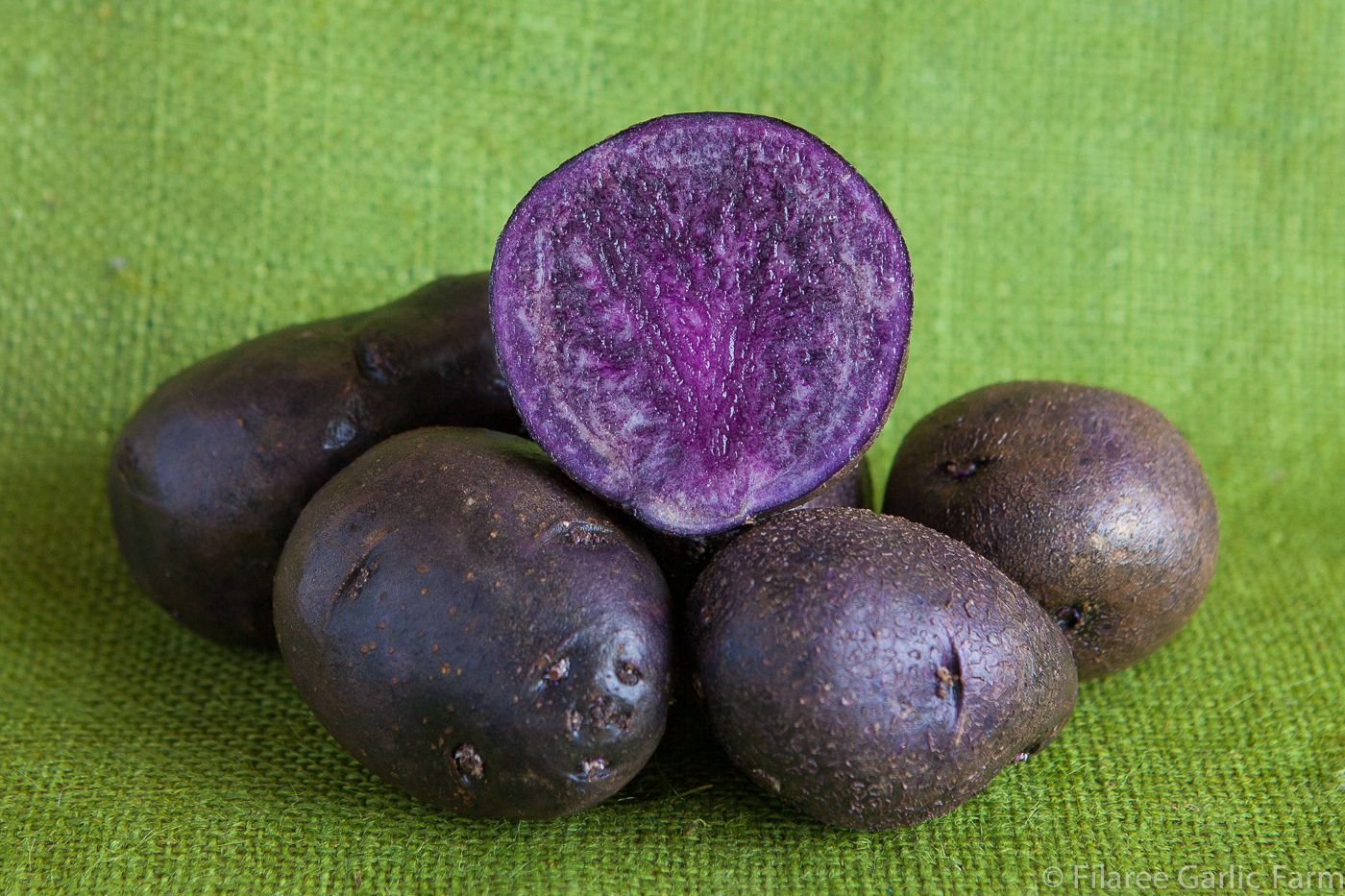 Also known as Blue Marker, River John Blue, Fenton Blue, and many other names, the All Blue potato is an heirloom variety believed to have discovered over 100 years ago. It is a flavorful potato characterized by a meaty flesh.