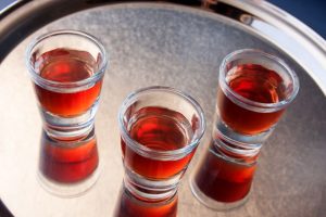 In a large can/pitcher/jug, mix 1 part of Jack Daniel’s Whiskey or Bourbon whiskey with ½ part of each of Prosecco or Moscato white wine and Lambrusco wine (a sparkling red Italian wine) or red port. Line up shot glasses and pour the mix into these. Add a splash of kombucha tea liquor into each and gobble down with your friends.